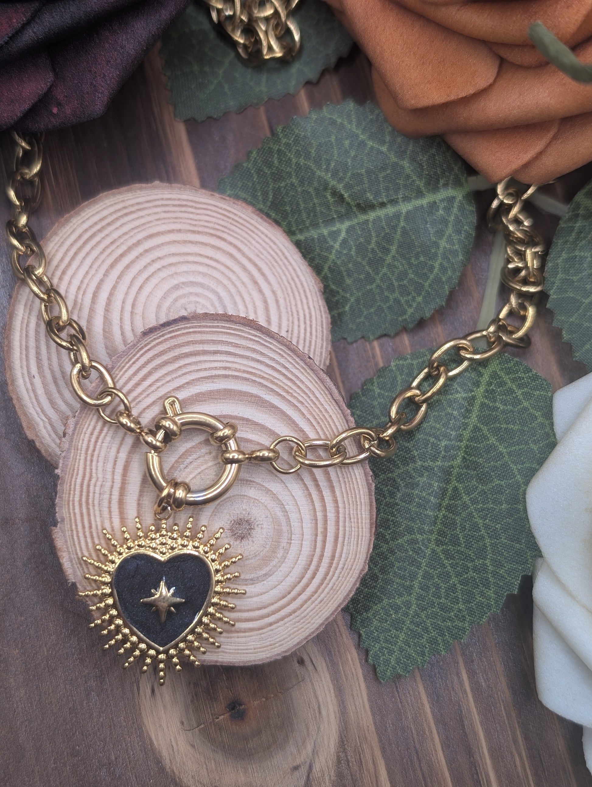 Made from 18ct Gold & Titanium Steel, this piece features a tension set opening with the possibility to add more charms or swap them out for the seasons.